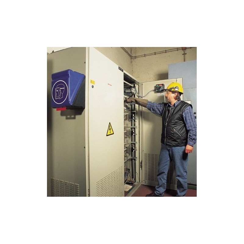 Úložný box největší v sérii na brýle, ochranu sluchu, ochranu dýchacích cest a rukavice. Včetně 4 piktogramů (ochrana hlavy, ochrana sluchu, ochrana dýchání, ochranný štít).